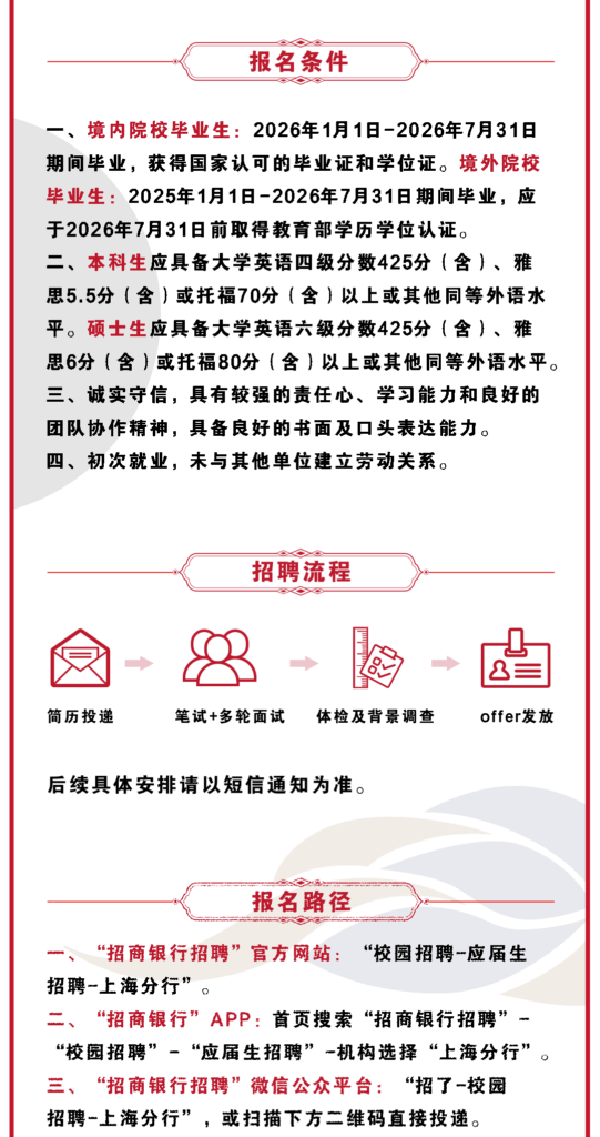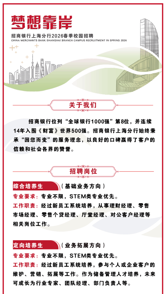 上海|“梦想靠岸”招商银行上海分行2026春季校园招聘
